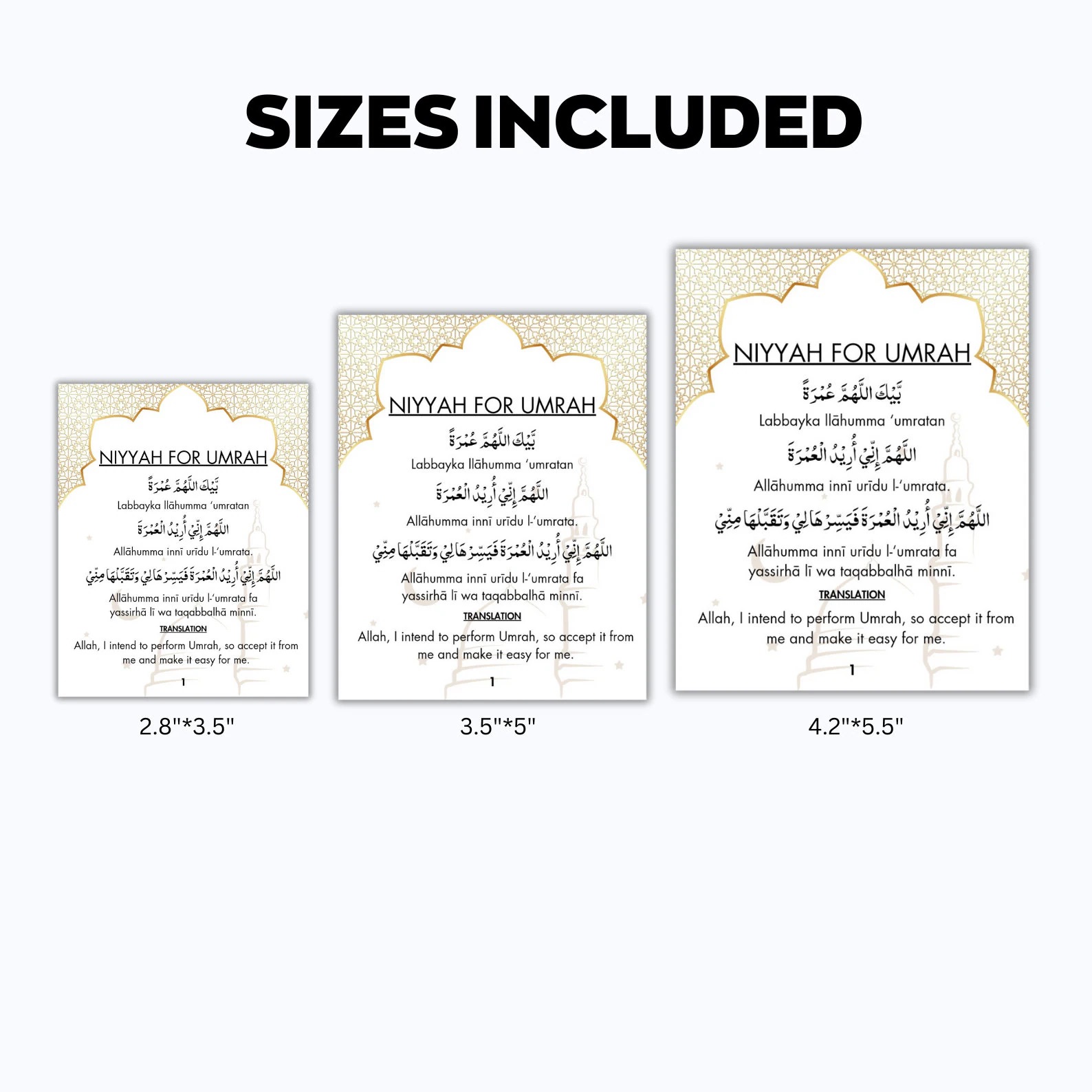 The cards come in three sizes, with Arabic and English font for easy reading. The large cards includes English translation too.