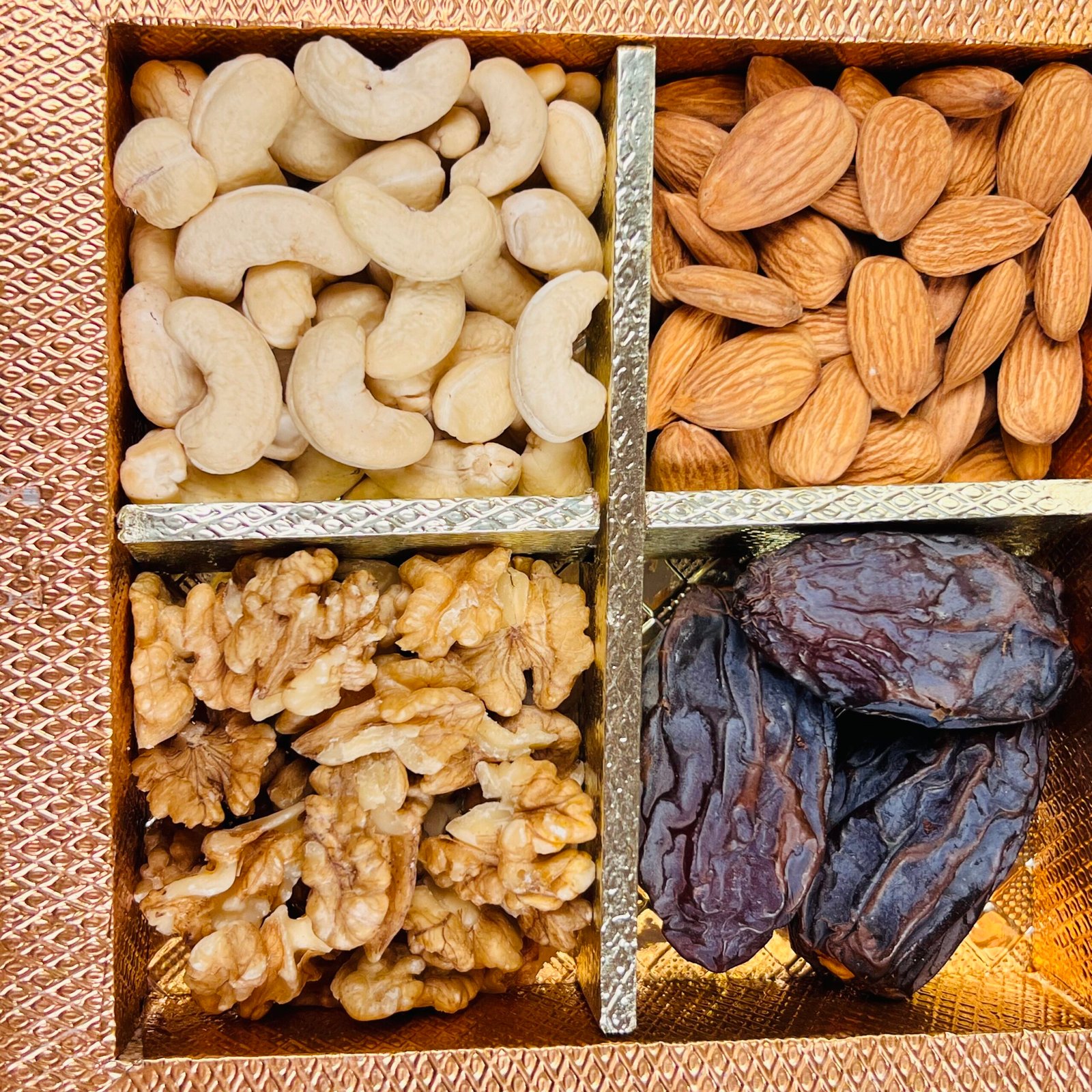 This gift set includes a variety of carefully selected dry fruits, such as almonds, cashews, Dates, and walnuts—all known for their rich nutritional value and exquisite taste.