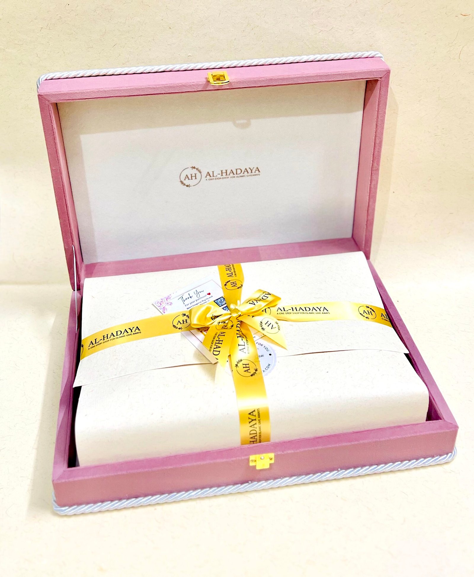 - Luxury Quran Box: A timeless piece to cherish and conserve your sacred Quran, this keepsake box is precisely handcrafted and is covered in rich pastel pink hues.
