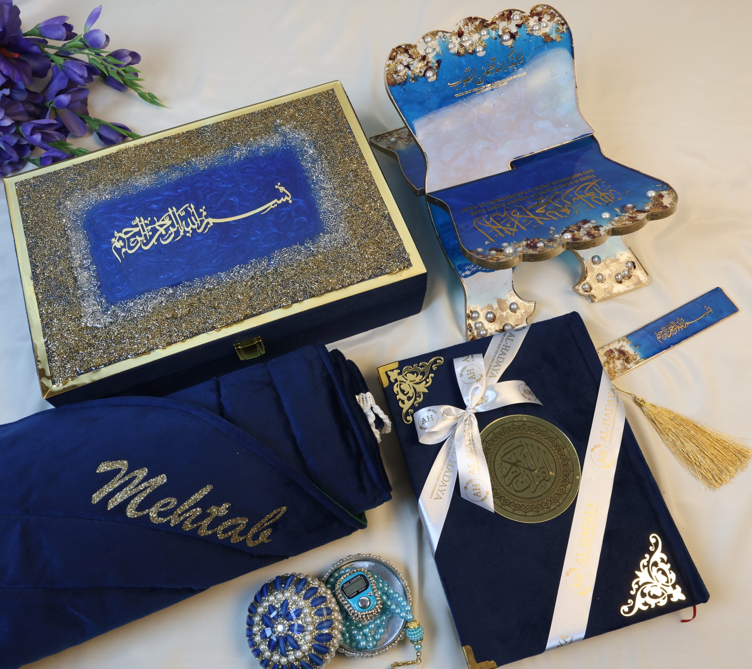 Experience the Royal Blue Elegance: Barkat-e-Jariyah Resin Quran Hamper – a beautifully curated Quran gift set designed to inspire faith, serenity, and style. Crafted with care for those who appreciate both spiritual depth and modern elegance, this premium hamper features exquisite Islamic prayer essentials in a soothing Royal Blue shade.