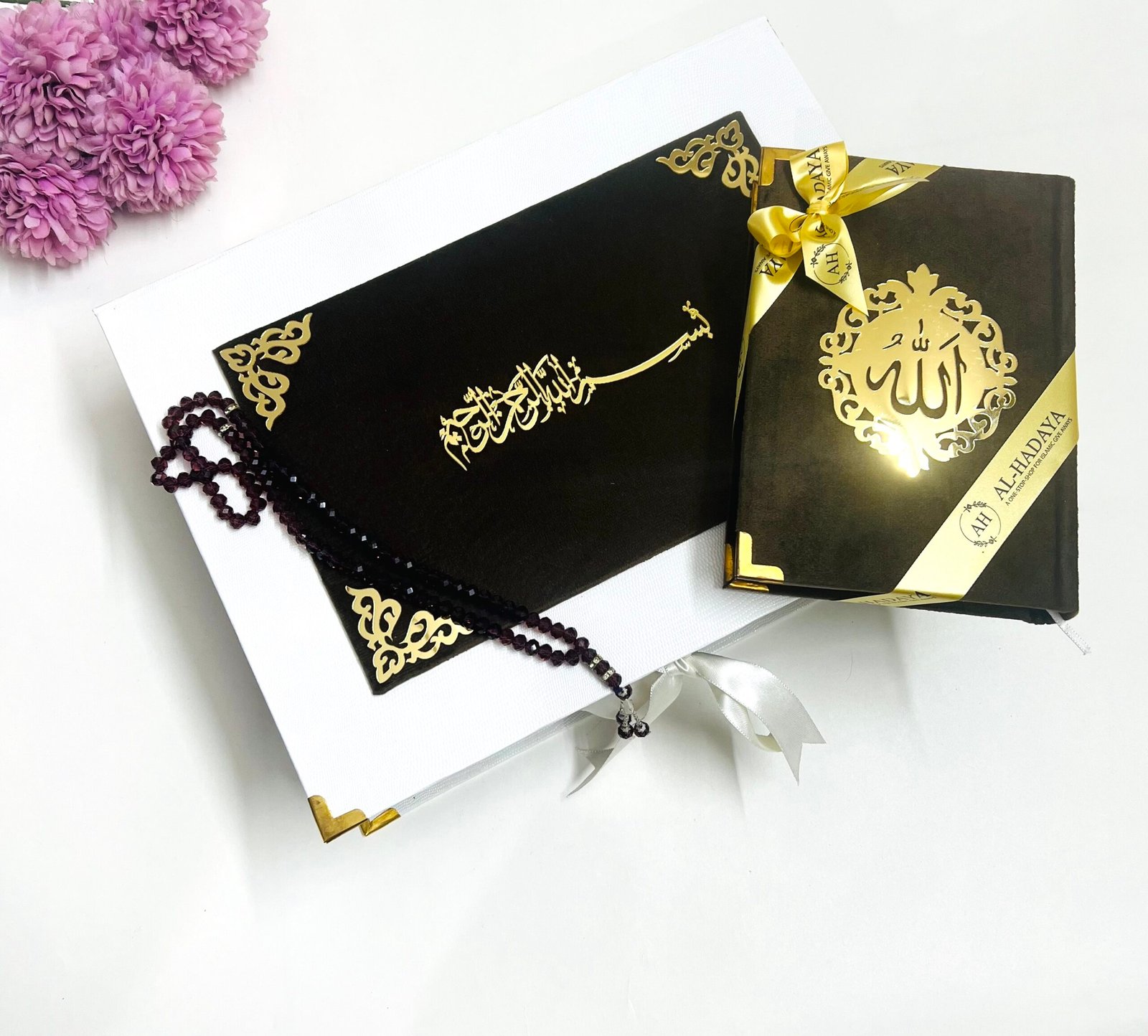 This hamper encapsulates the essence of devotion and sophistication, perfect for weddings, graduations, nikah, new reverts who just took their shahadah, engagement, Eid, Ramadan, housewarming, Hifz Completion and other significant milestones.