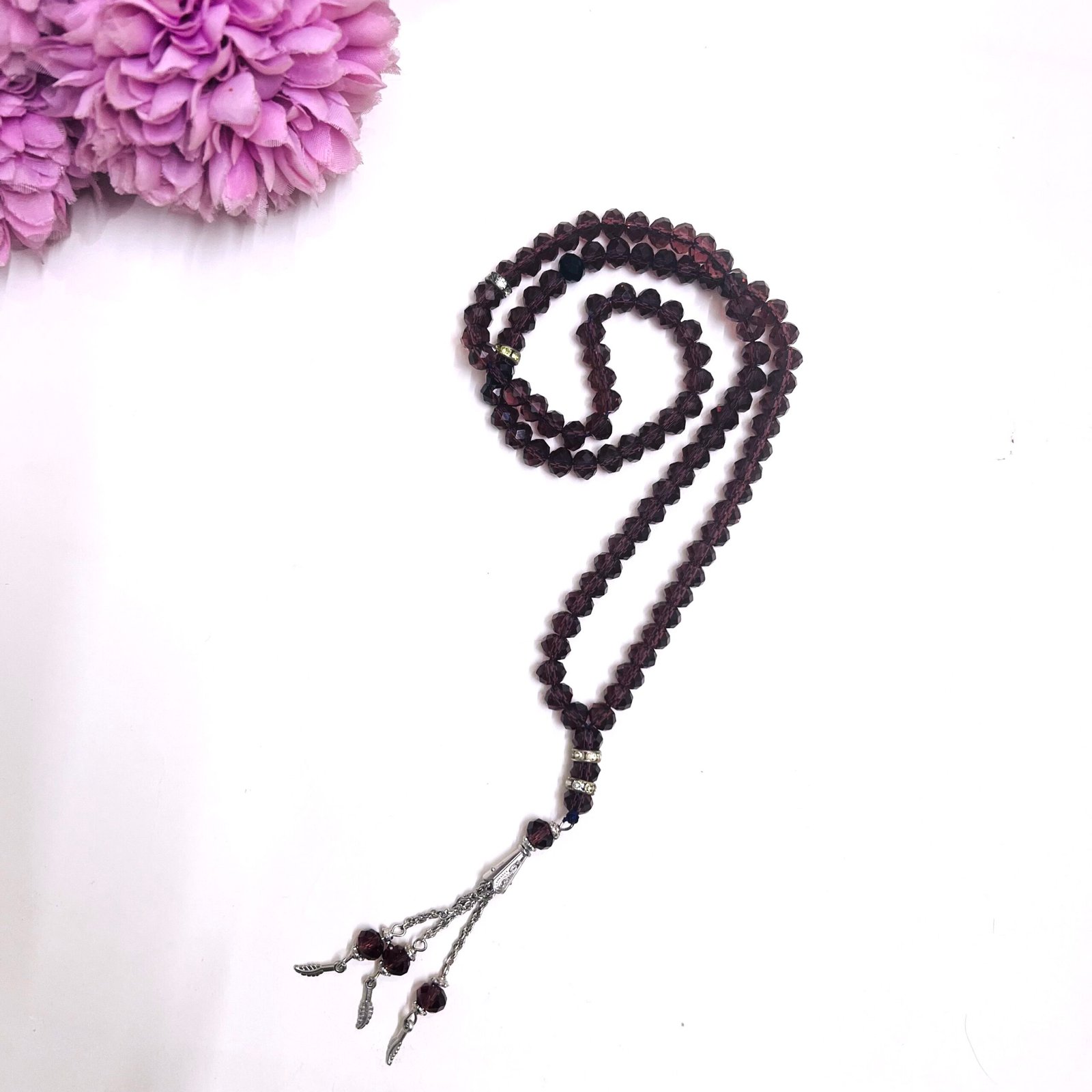 Shining crystal tasbih in brown shaded crystals with 99 prayer beads along with metallic tassels.