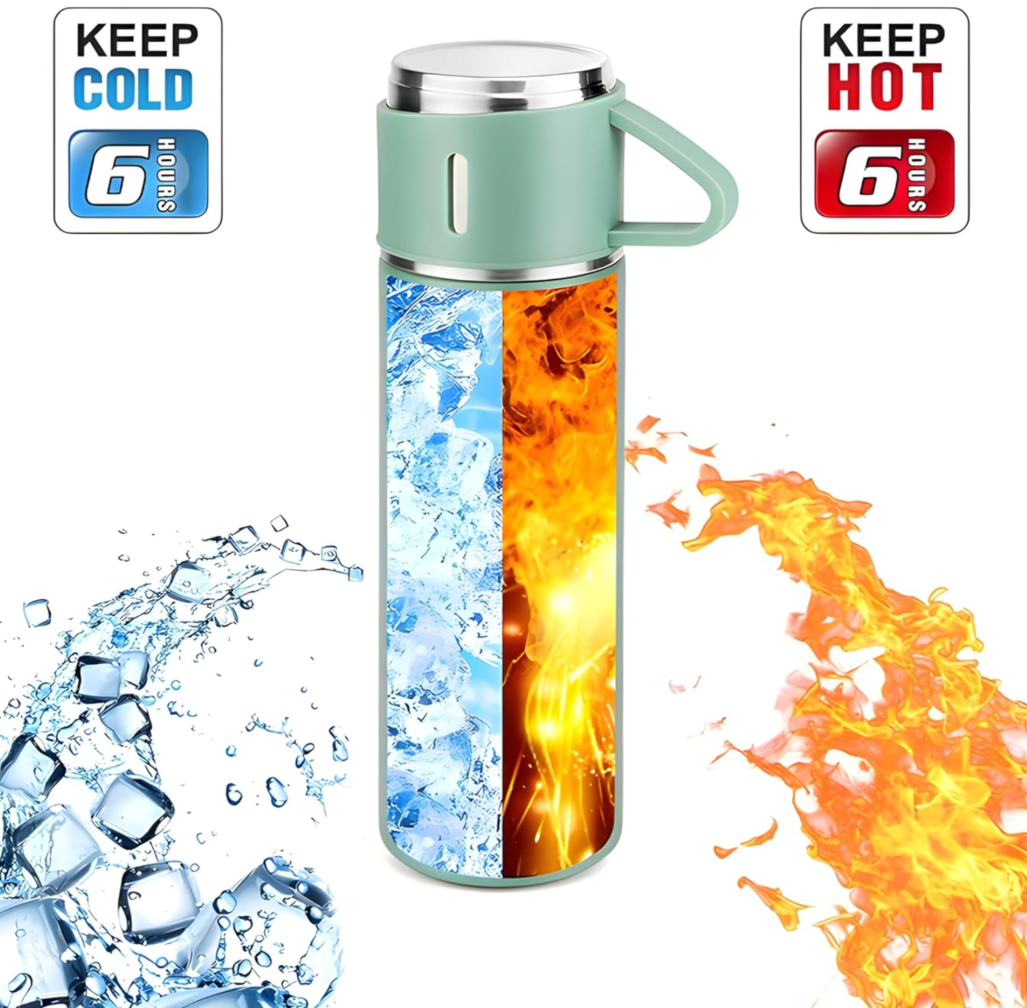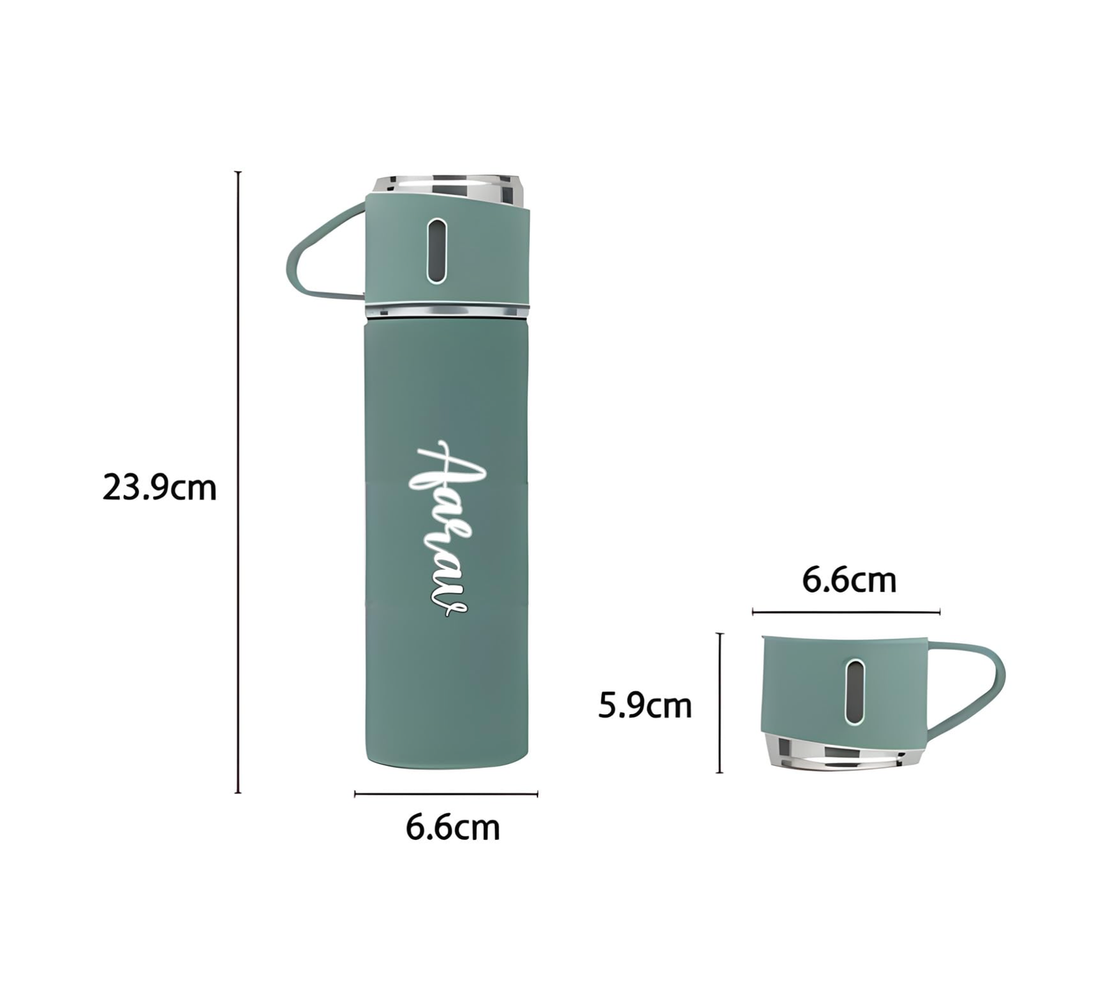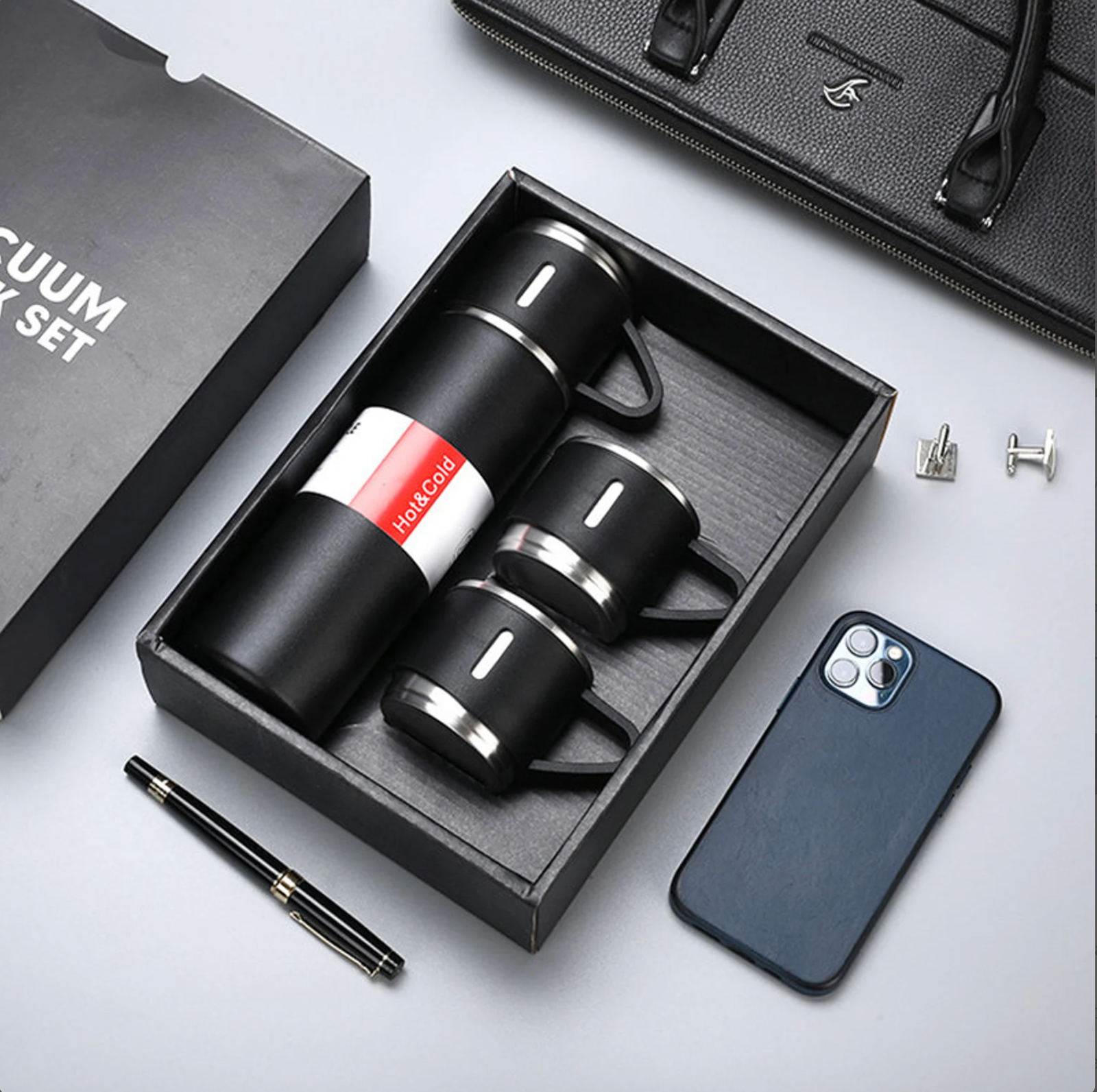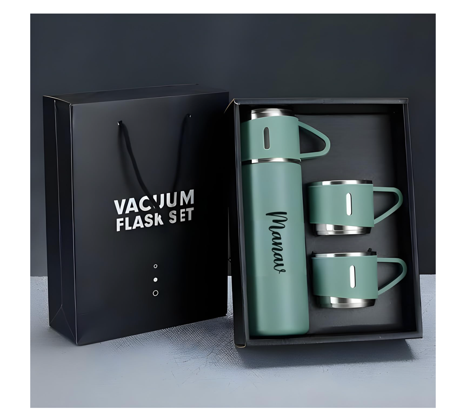 Al-Hadaya Presents a perfect gift set of a 500ml insulated thermal heat flask with 3 cups water bottle in total including independent lid cup. Ideal for daily use to keep hot and cold drinks like tea or coffee. This stylish and sturdy coffee bottle is made of high-quality food-grade stainless steel and will not break and scratch-resistant. It is very easy to clean. This is the best gift for family or friends and to office colleagues as well.