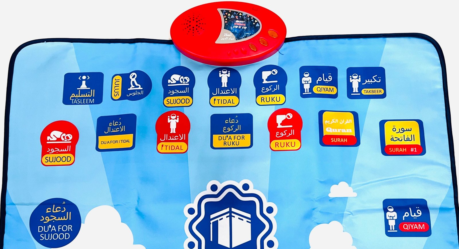 The mat’s bright and aesthetically attractive design incorporates iconography and drawings that assist youngsters in understanding the postures and motions required in each phase of the prayer.