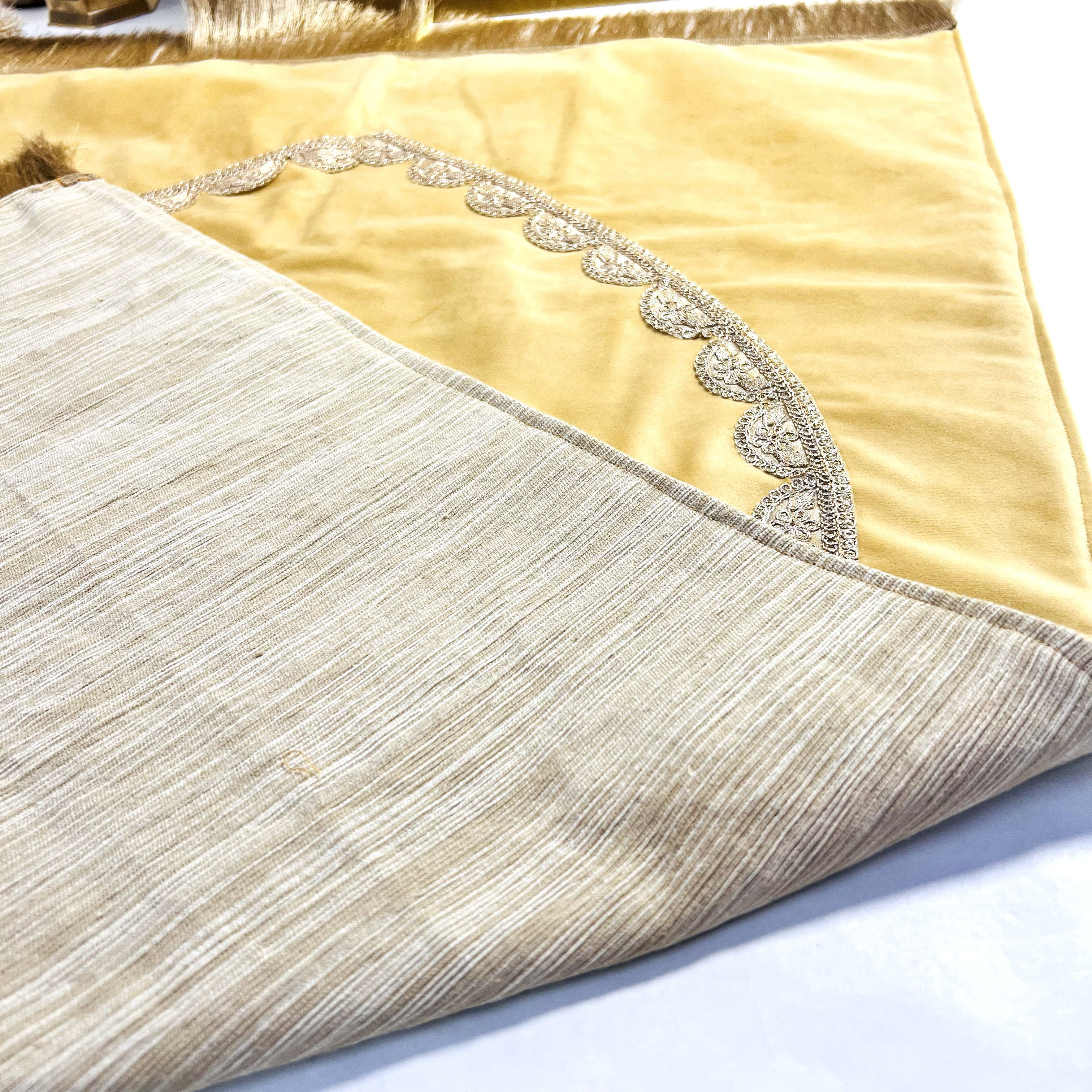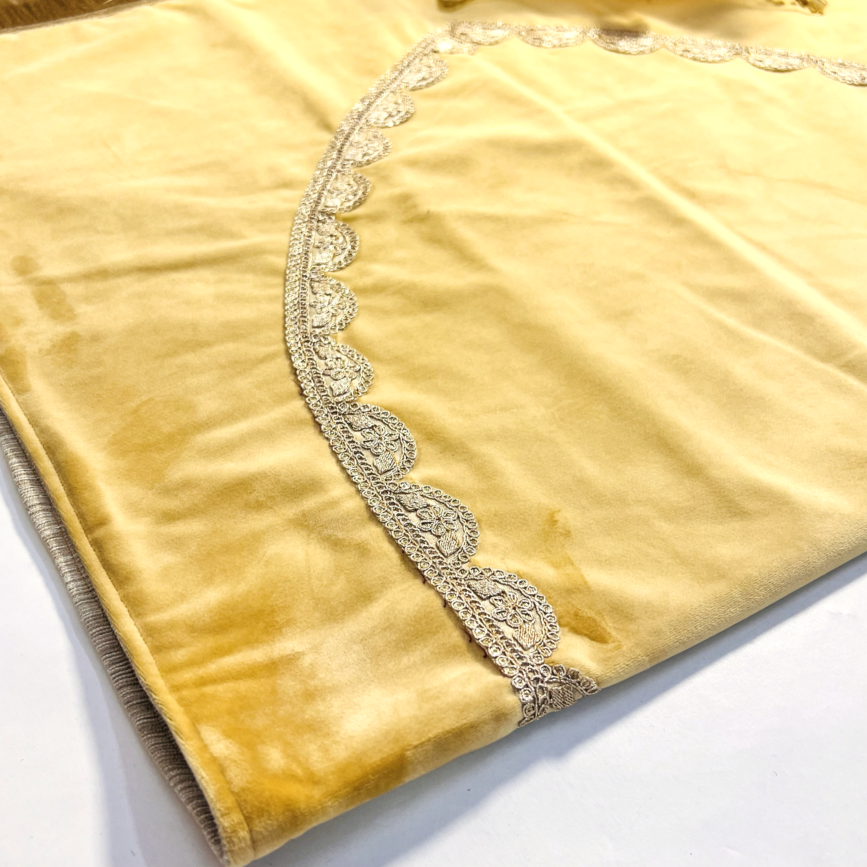 - Luxe Velvet Box for the Quran (Made of Resin): The Quran is housed in a large, beautifully designed velvet box with a soft, rich golden texture. This box not only serves as a protective case but also enhances the overall presentation, making it a standout piece for any prayer room or display. Approx. Size 37cm x 27cm x 11 cm.