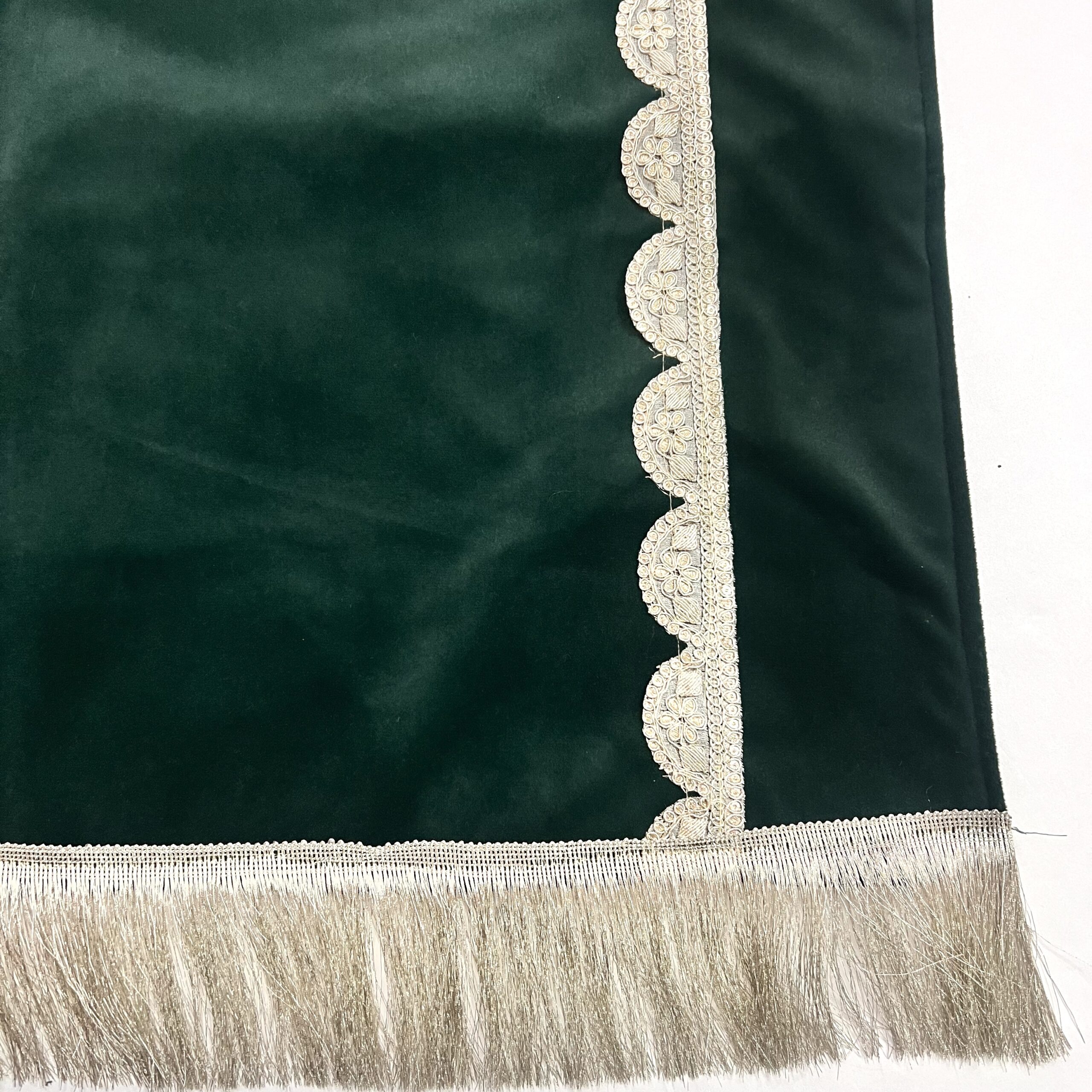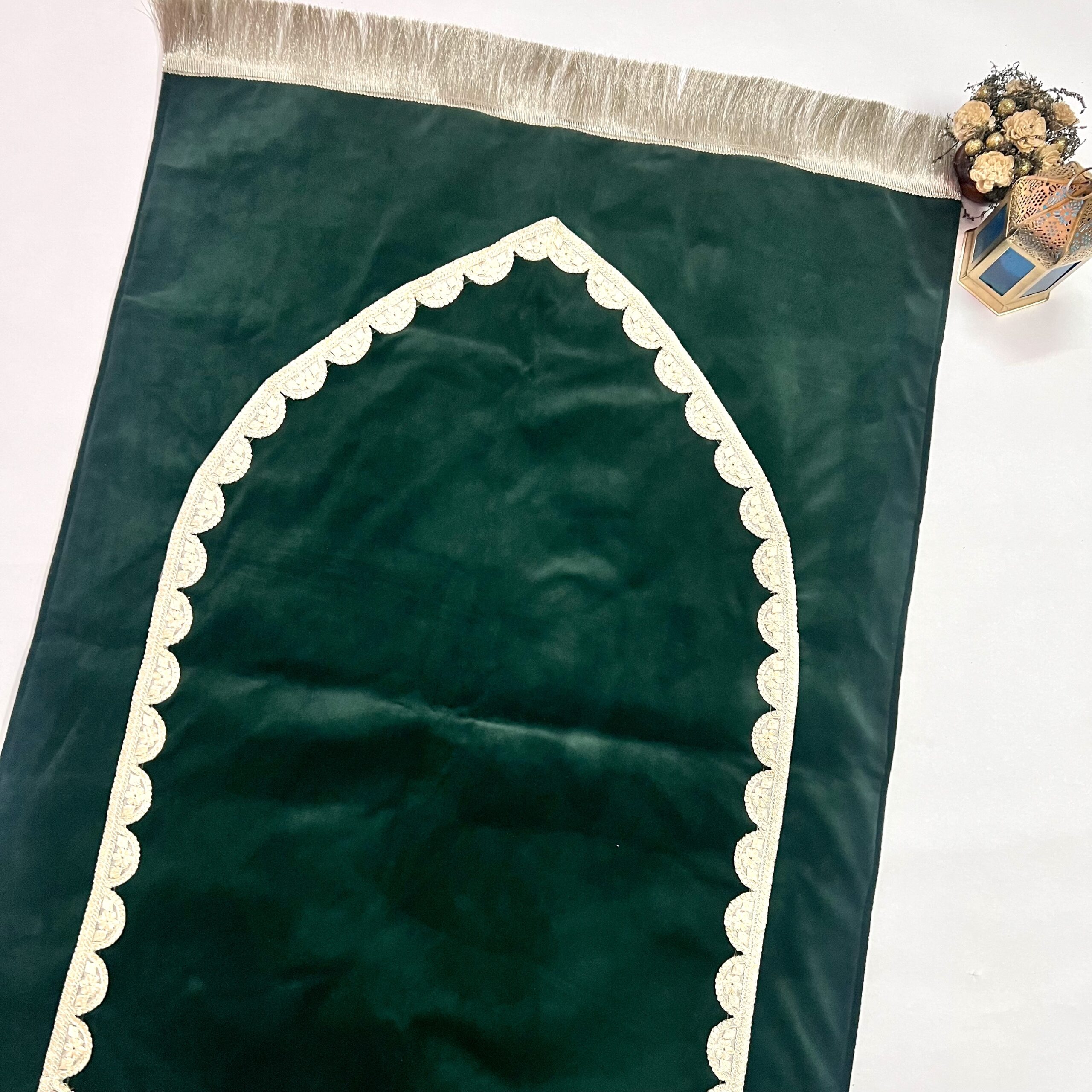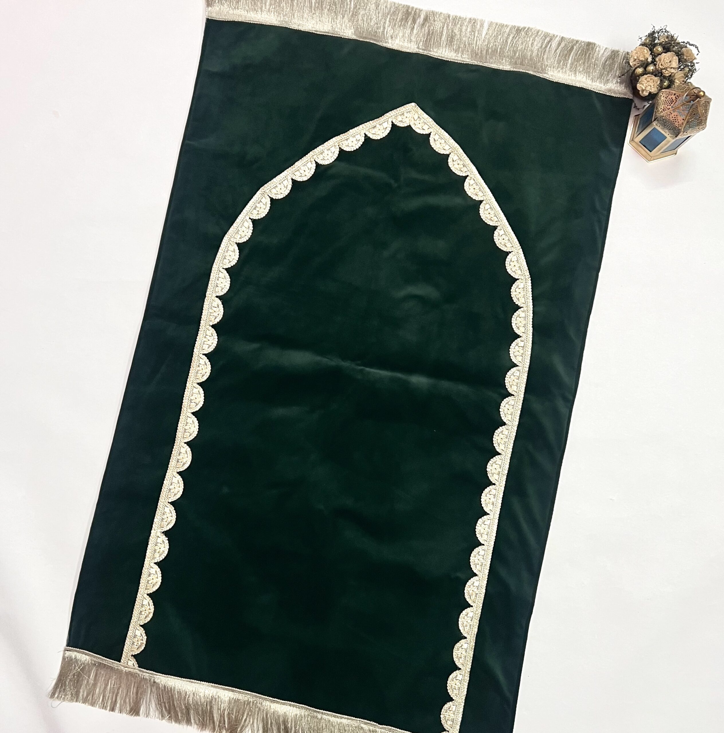 Elevate your moments of worship with the Ibadat Essentials Collection, featuring this beautifully handcrafted Velvet Prayer Mat in a rich olive green hue. Designed to add a touch of elegance and devotion to your prayer space, this luxurious janamaz is perfect for personal use or gifting.