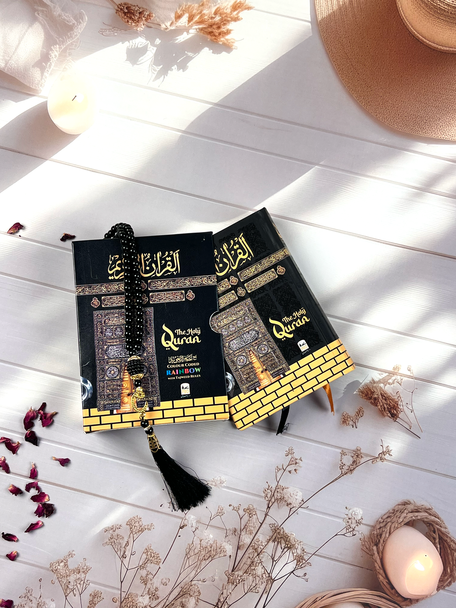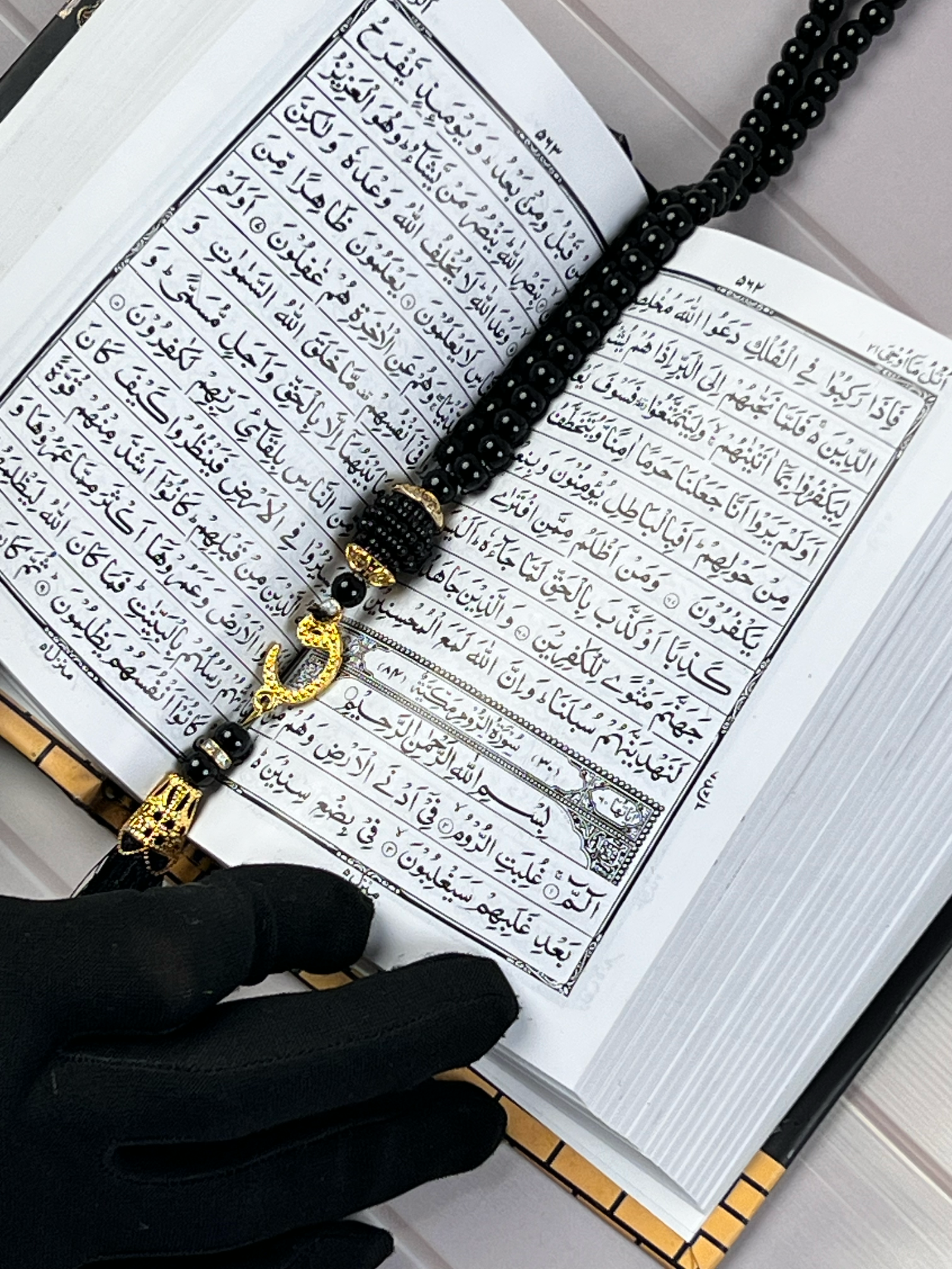 Kaaba Cover Quran | Hardcover | Arabic | Simple Plane Arabic Pocket Quran| With Black Iqra Tasbih