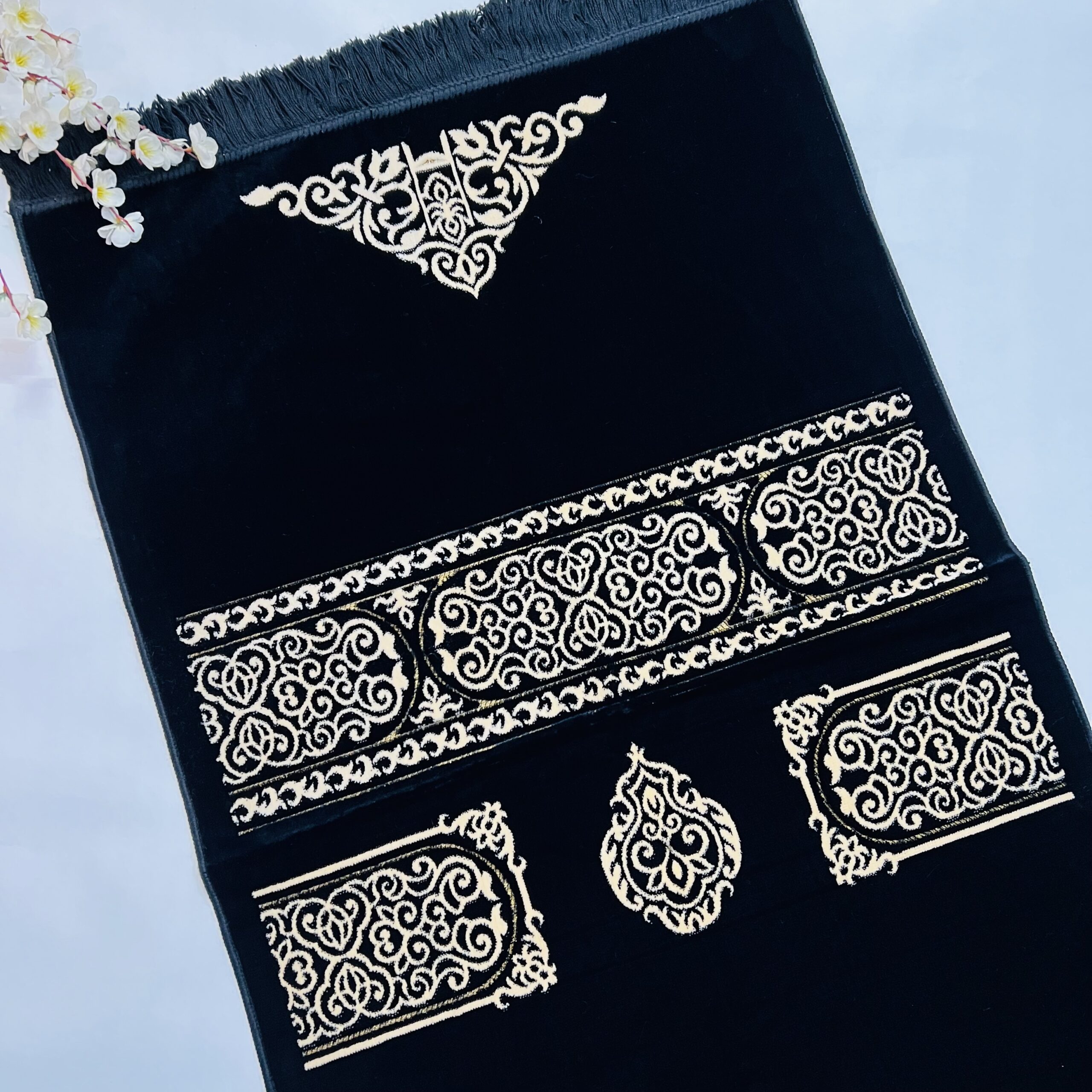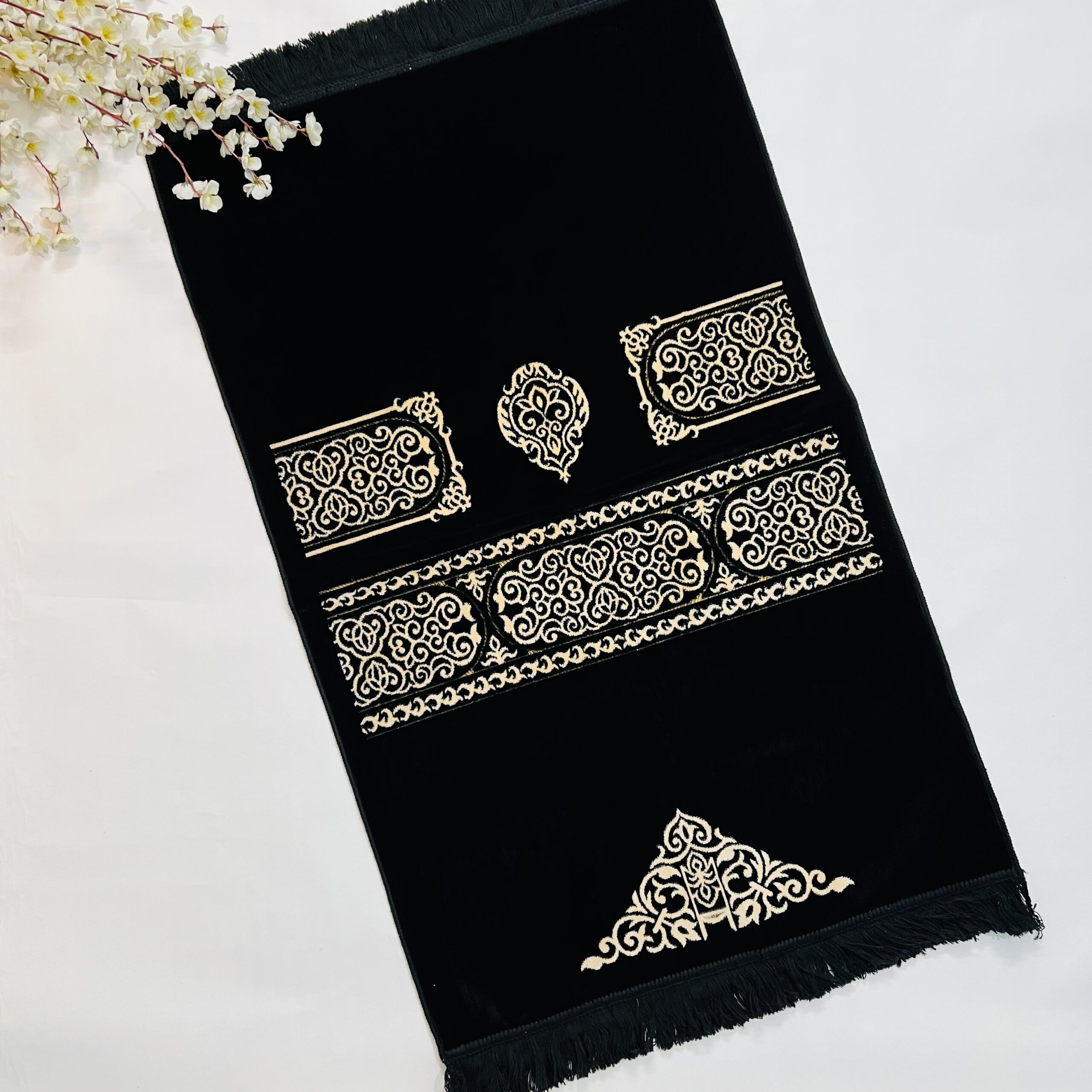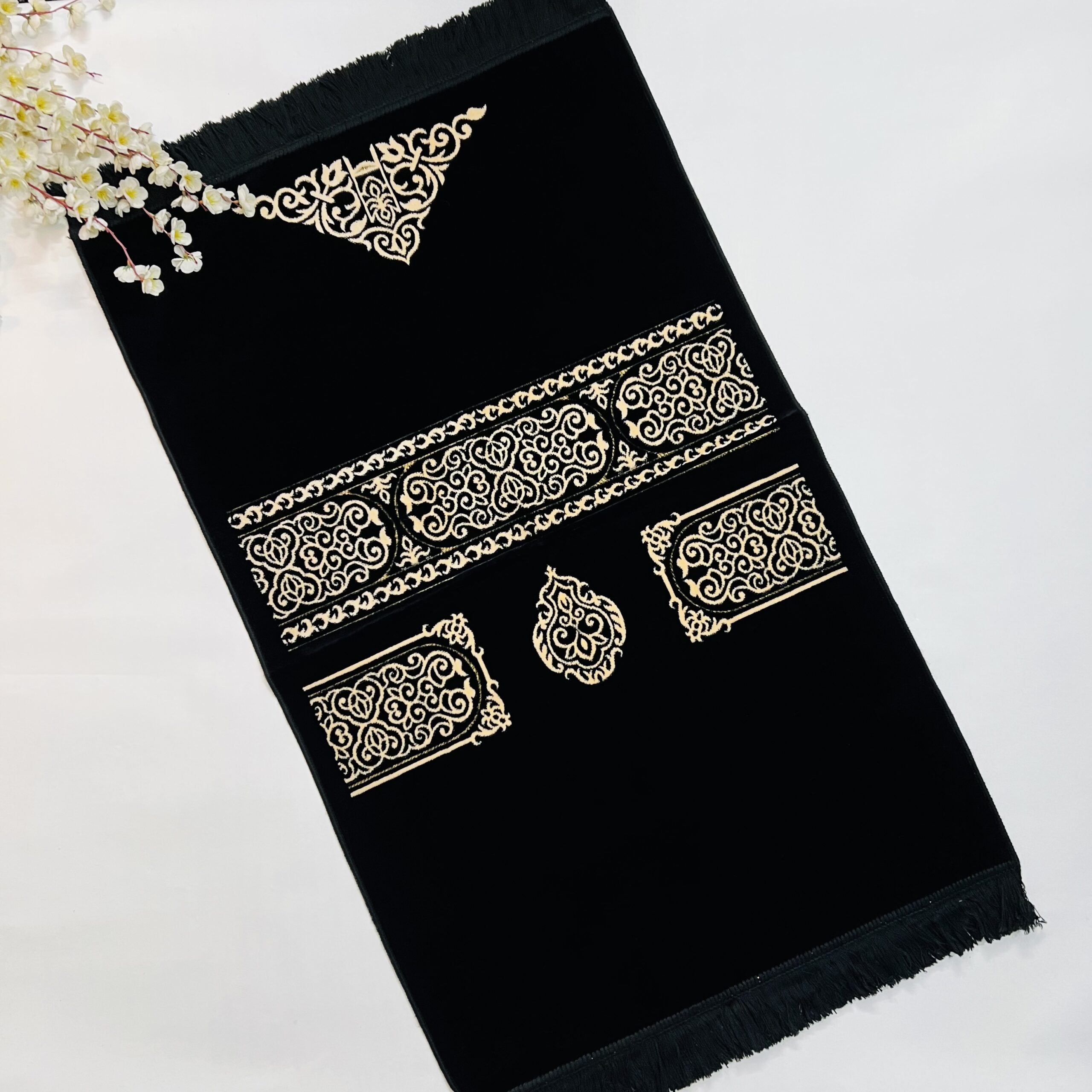 Our beautiful Kiswa al Kaba pattern Muslim prayer Mat is suitable for many occasions. Ramadan, Eid, Hajj, Umrah, Wedding/Nikah, Aqiqa and any other special occasion., etc., making your occasion so unique and impressive — the list goes on.