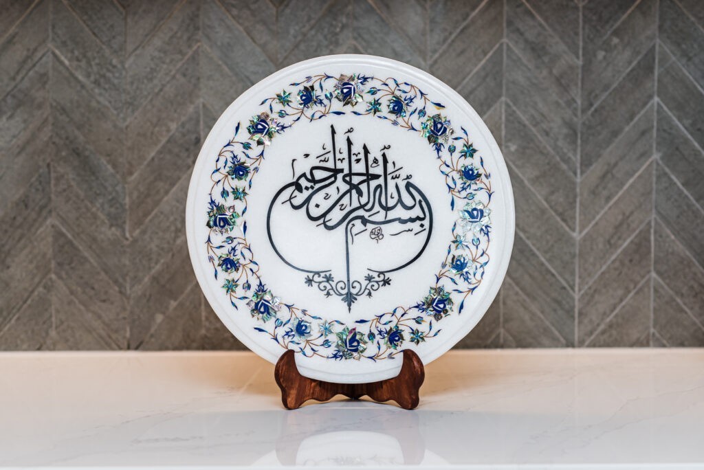 This exquisite Arabic Calligraphy design is 15″ inches and has 1200 stones. It took 360 work hours to complete this masterpiece.