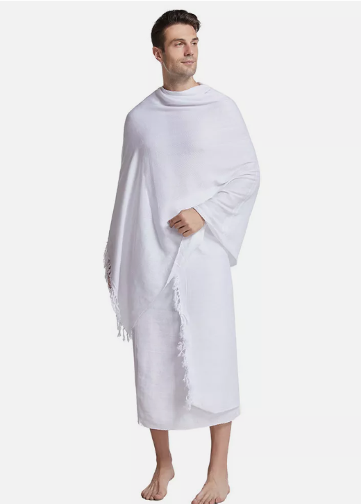 Prepare for your sacred journey with this premium-quality Ihram towel, crafted from 100% natural cotton. Designed specifically for the pilgrimage of Hajj and Umrah, this two-piece Ihram set ensures purity, comfort, and practicality during your spiritual rituals. Free from any stitched elements, perfumes, or dyes, it upholds the sanctity of Ihram requirements, Made of 100% natural hygienic cotton for breathability and comfort during Hajj and Umrah.