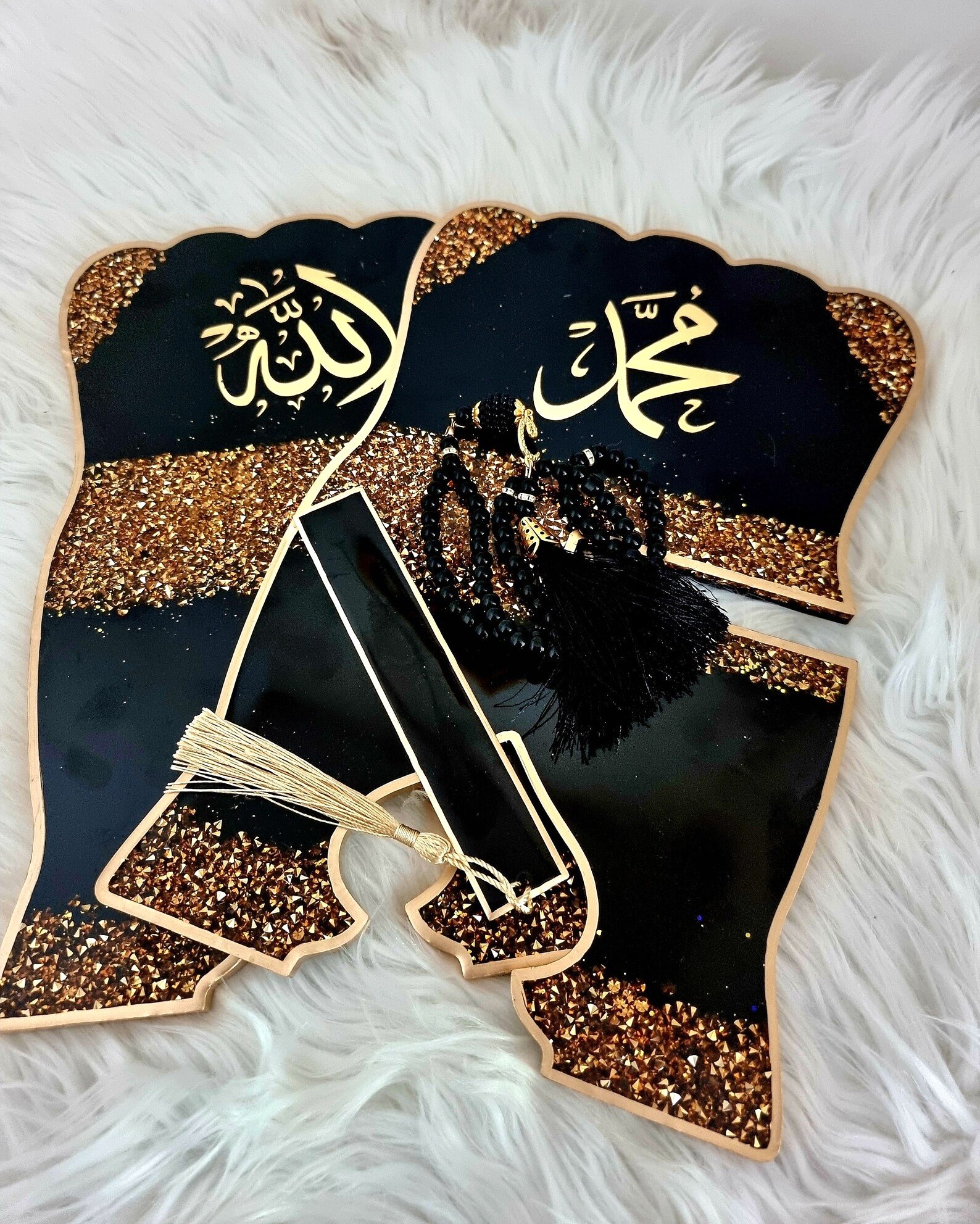 1 review for Personalised Black and Gold Quran stand with matching bookmark and Turkish Tasbeeh