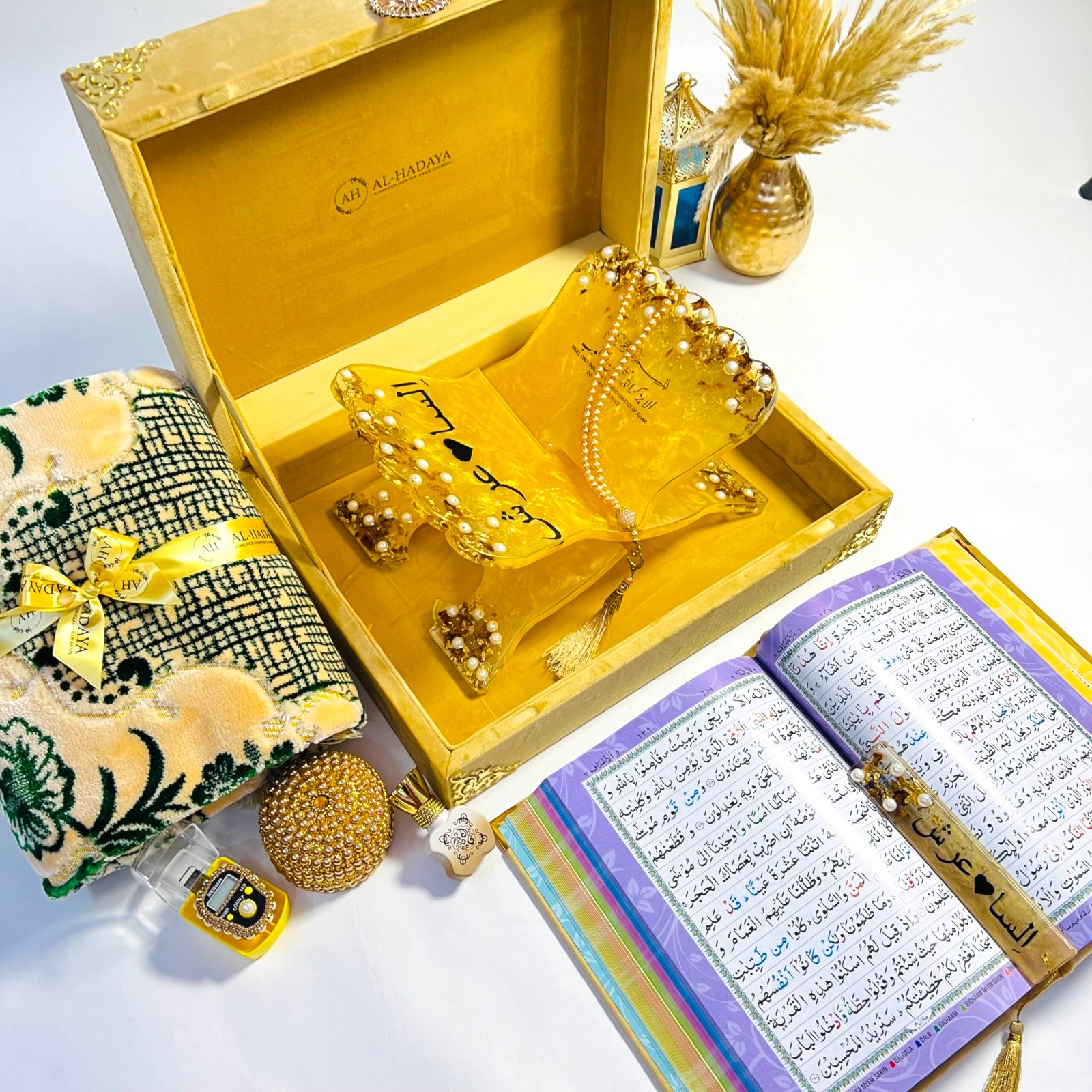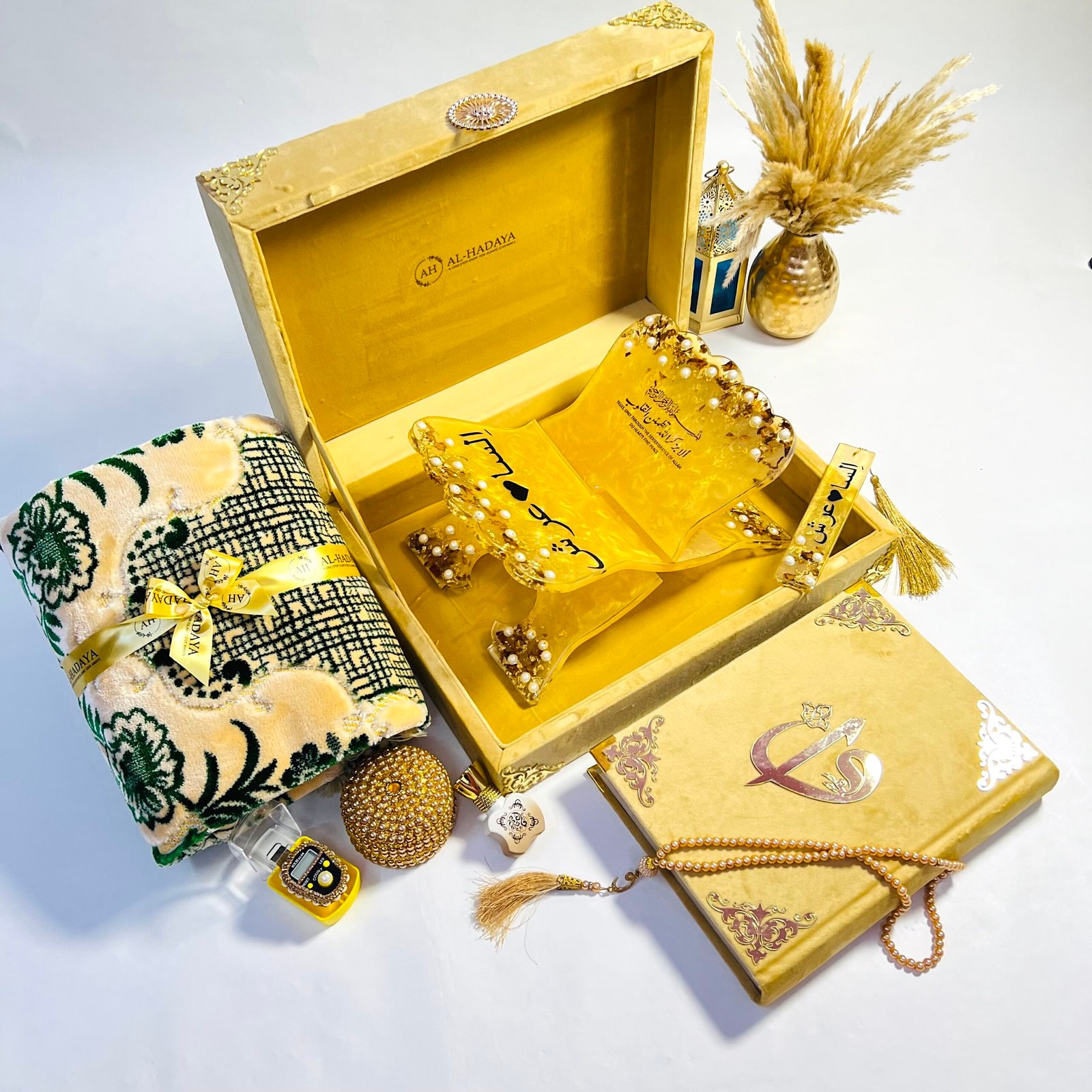 Introducing Al-Hadaya’s Hubb Al-Iman (Love of Faith) Collection—a luxurious and elegant Quran gift set thoughtfully curated to enhance your spiritual journey. Specially crafted for those who seek elegance and spirituality in their Islamic prayer essentials. This premium collection embodies sophistication and devotion, offering a complete set of Islamic prayer essentials that reflect beauty, faith, and tradition.
