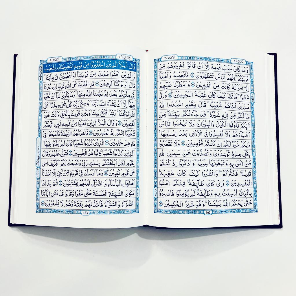 This is a deluxe, medium sized, hardbound Hifz Quran, imported from the Middle East.