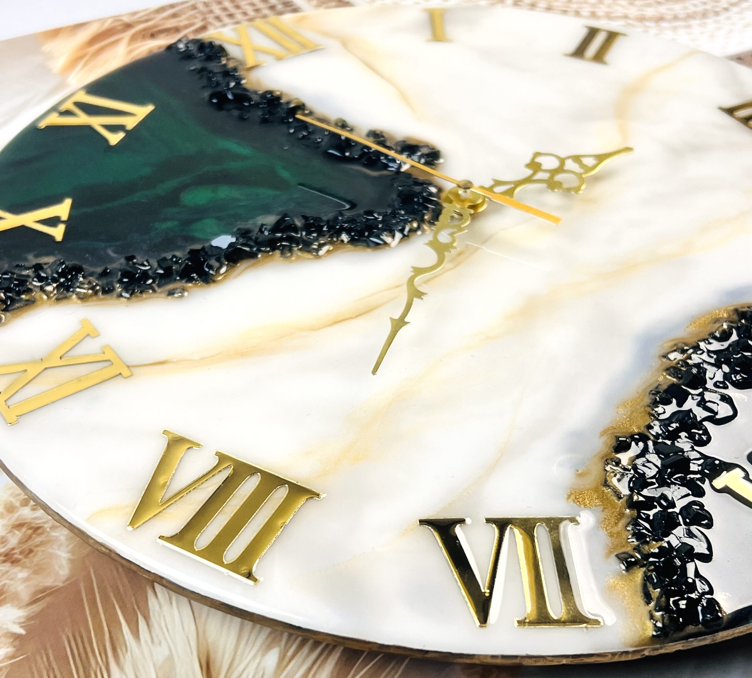 The picture is absolutely stunning 16 inches (30cm) resin clock. It is unique handmade wall decor.