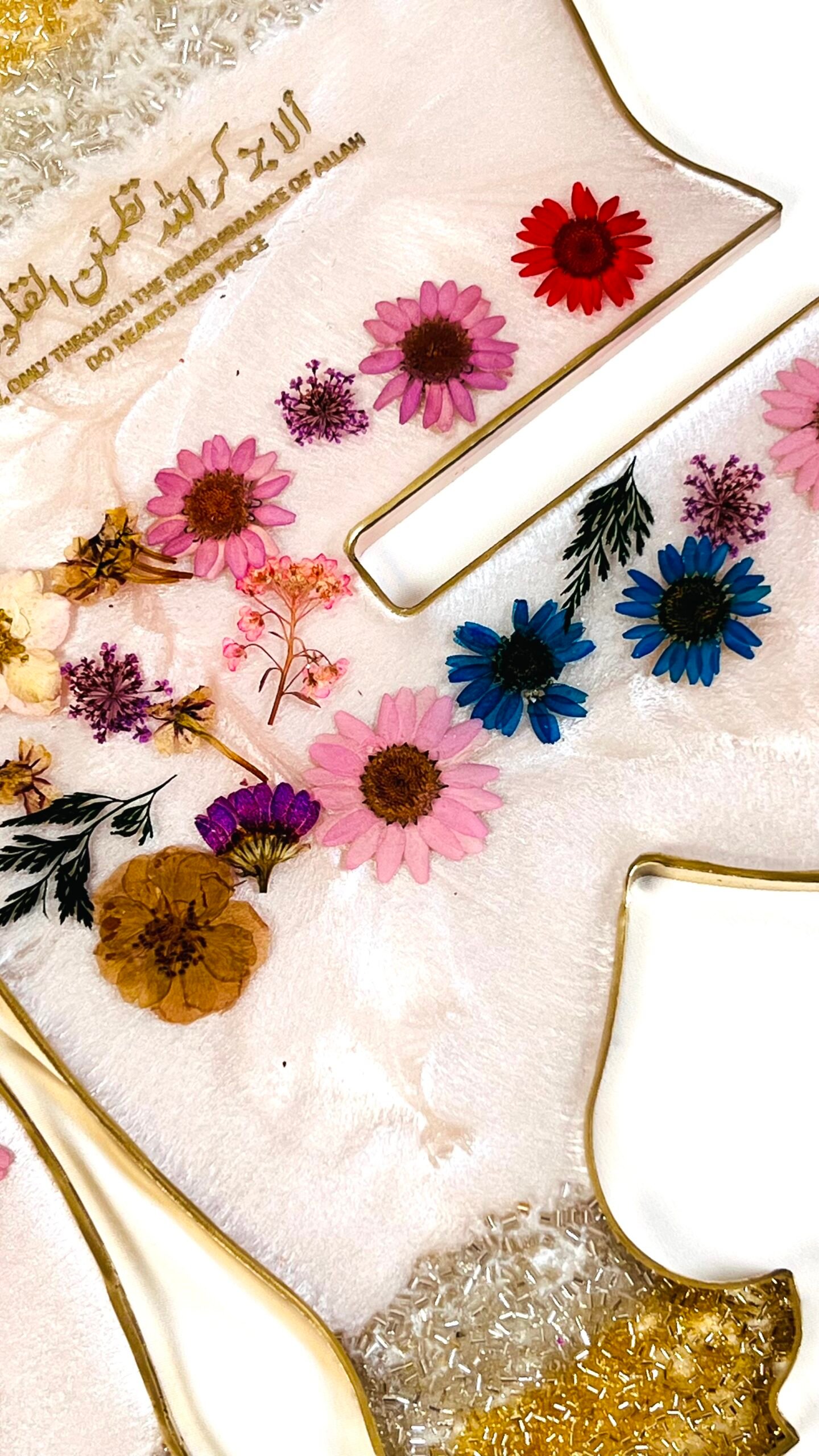 Elevate your sacred space with this exclusive dual-piece set, thoughtfully designed to combine traditional artistry with modern elegance. Perfect for both personal devotion and as a cherished gift, this set includes a durable Resin Quran Stand and a Handmade Resin Quran Box that can be customised with your chosen name.