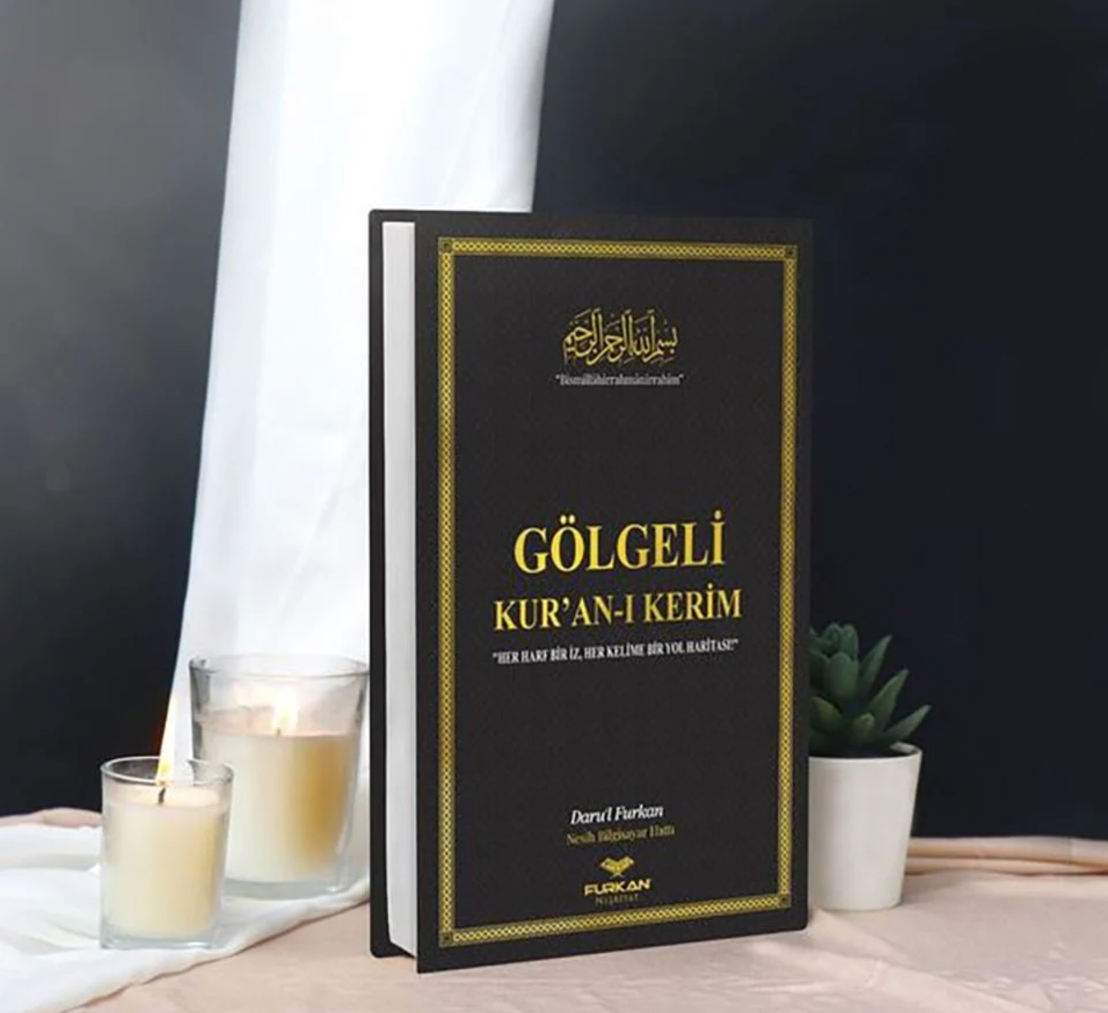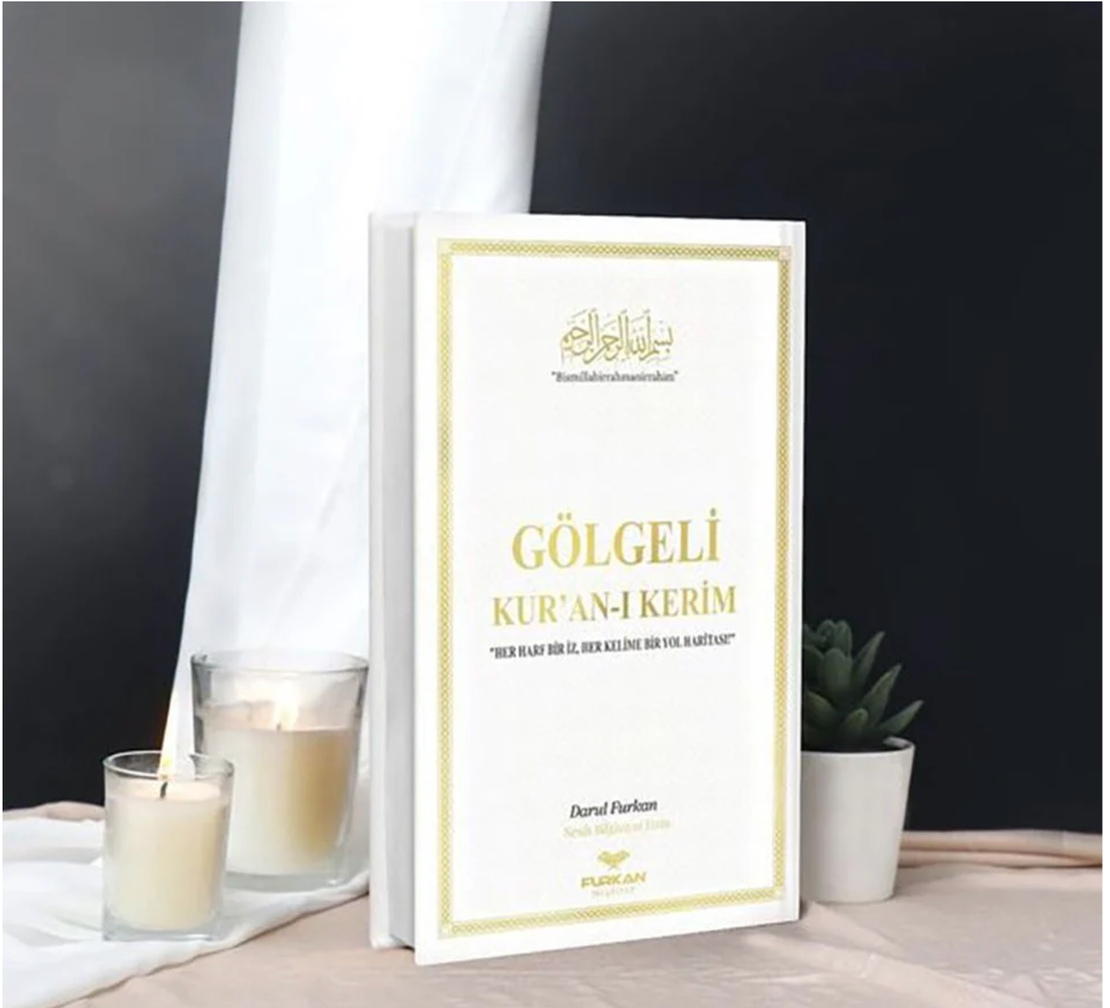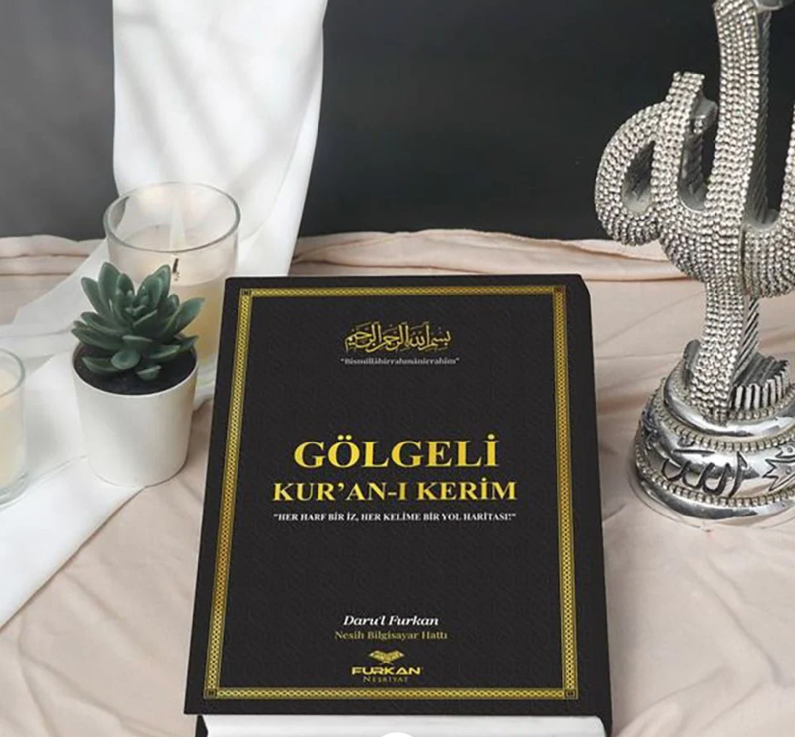 • Comes with a gold bookmark that has a cutout of the Basmala in the middle and a gold tassel at the top.